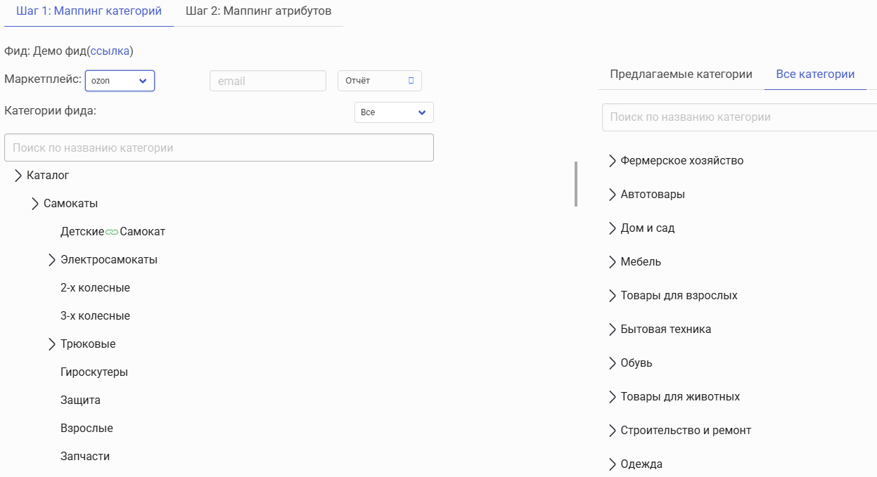 Сервис поддерживает кастомизацию сопоставлений через визуальный интерфейс и API, позволяя адаптировать правила под любые фиды и платформы без изменения кода. Обновление информационных моделей происходит автоматически или вручную, обеспечивая совместимость с изменениями в структурах данных платформ.